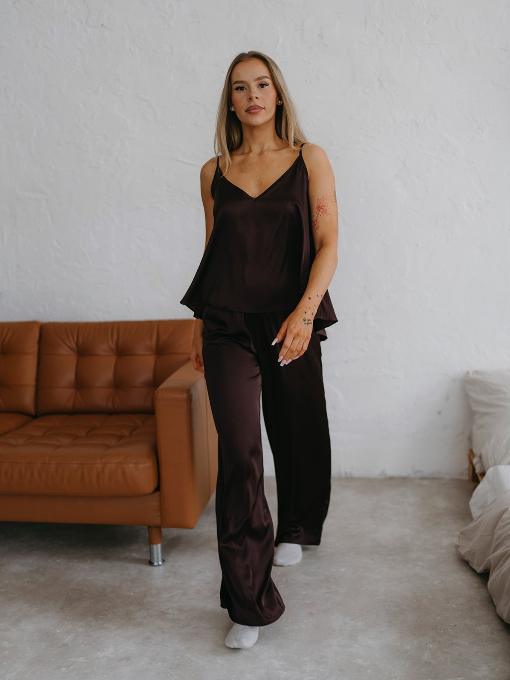 Navyše, ak dostaneš chuť niekam vyraziť, vôbec sa nemusíš prezliekať. Doplň outfit vysokými topánkami alebo vymeň FANCY Pants za nohavice či sukňu a užívaj si pyžamovú pohodu aj mimo postele.