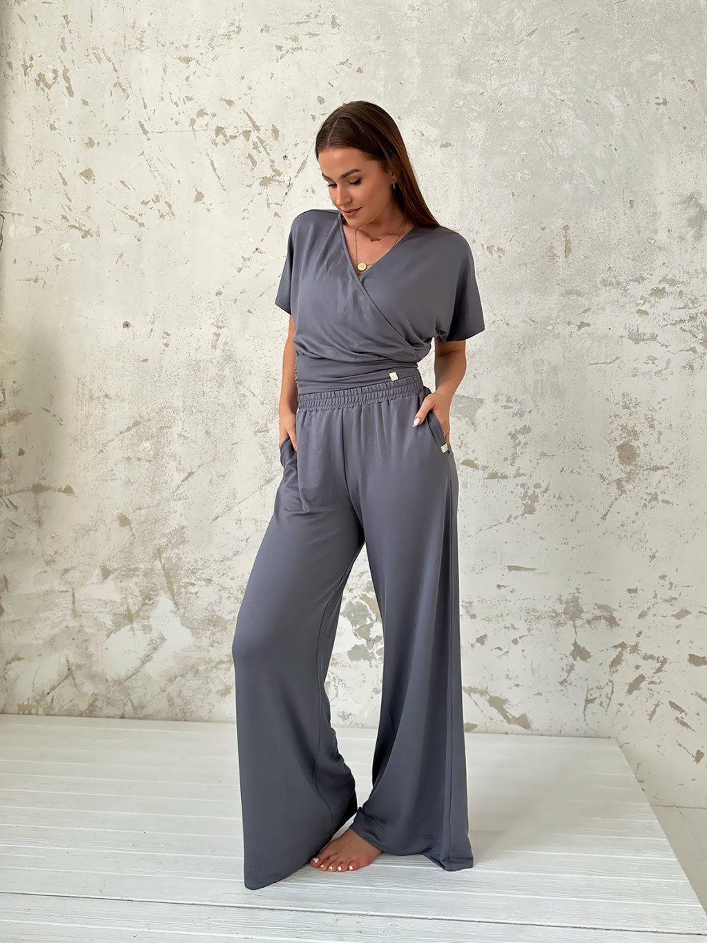 Dámske Ecovero nohavice FANCY FLOWY - sivá