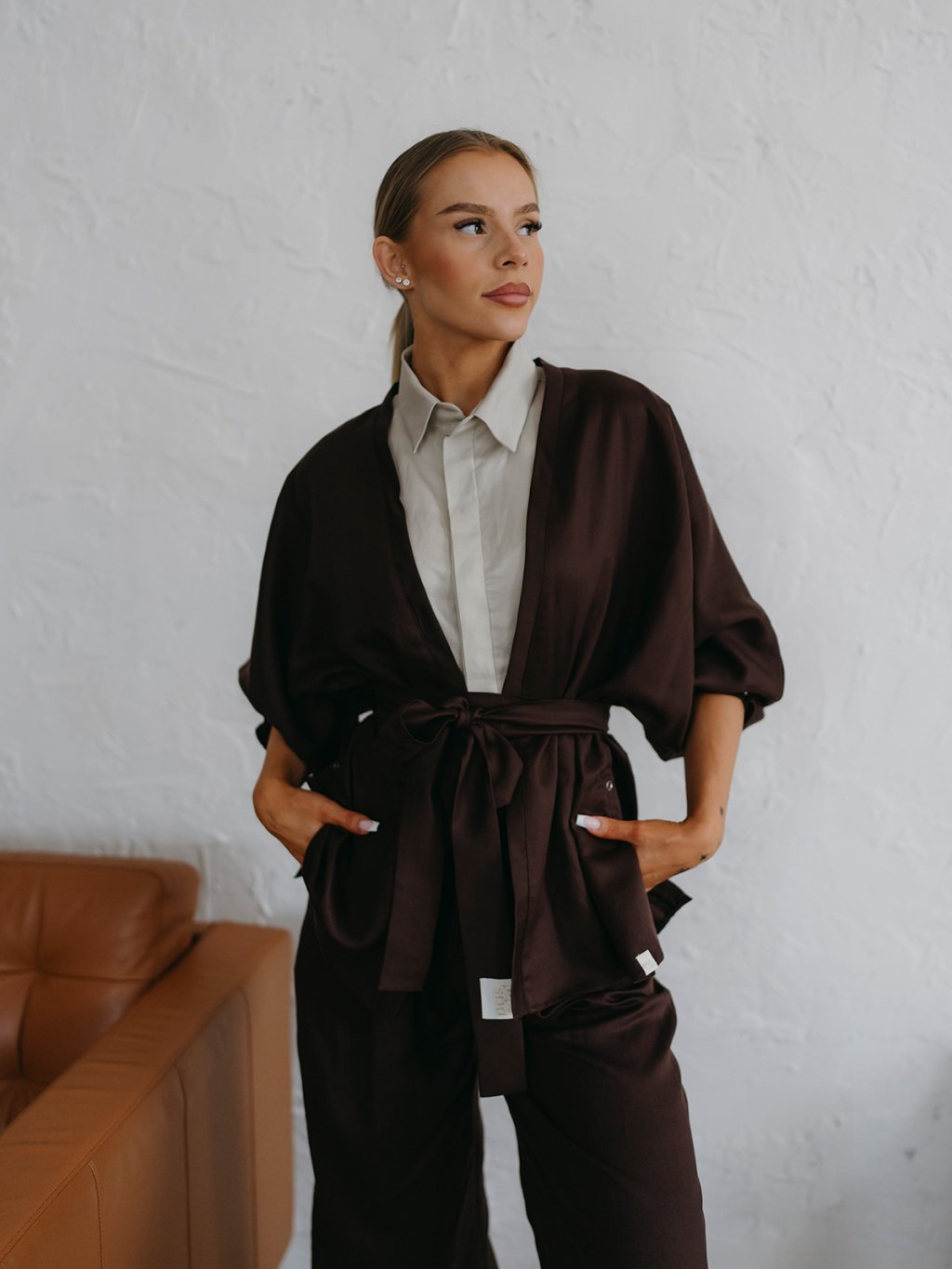 Dámske Kimono Tencel - Linen DAY VARIÉ - CHOCCO hnedá
