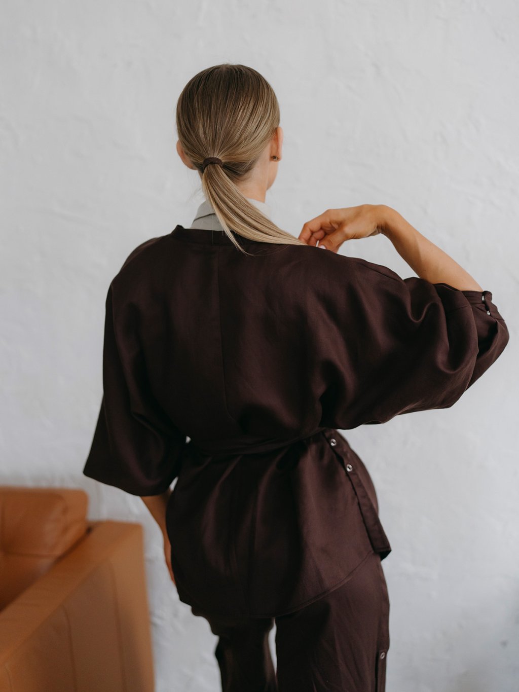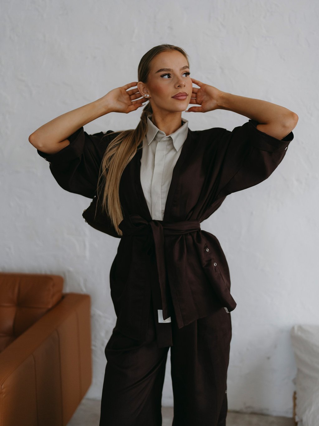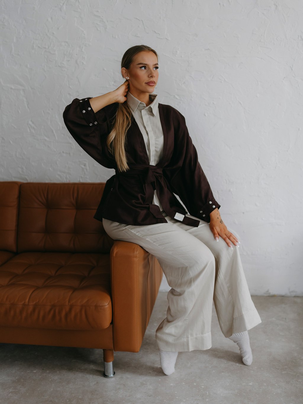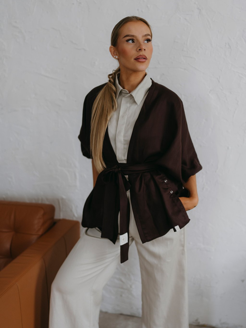 Kombinuj toto kimono s Tencel - Linen košeľou alebo Crop košeľou a vytvor tak zaujímavé stylingy. Inšpirácie nájdeš v galérii alebo na našom instagrame @priskini.sk