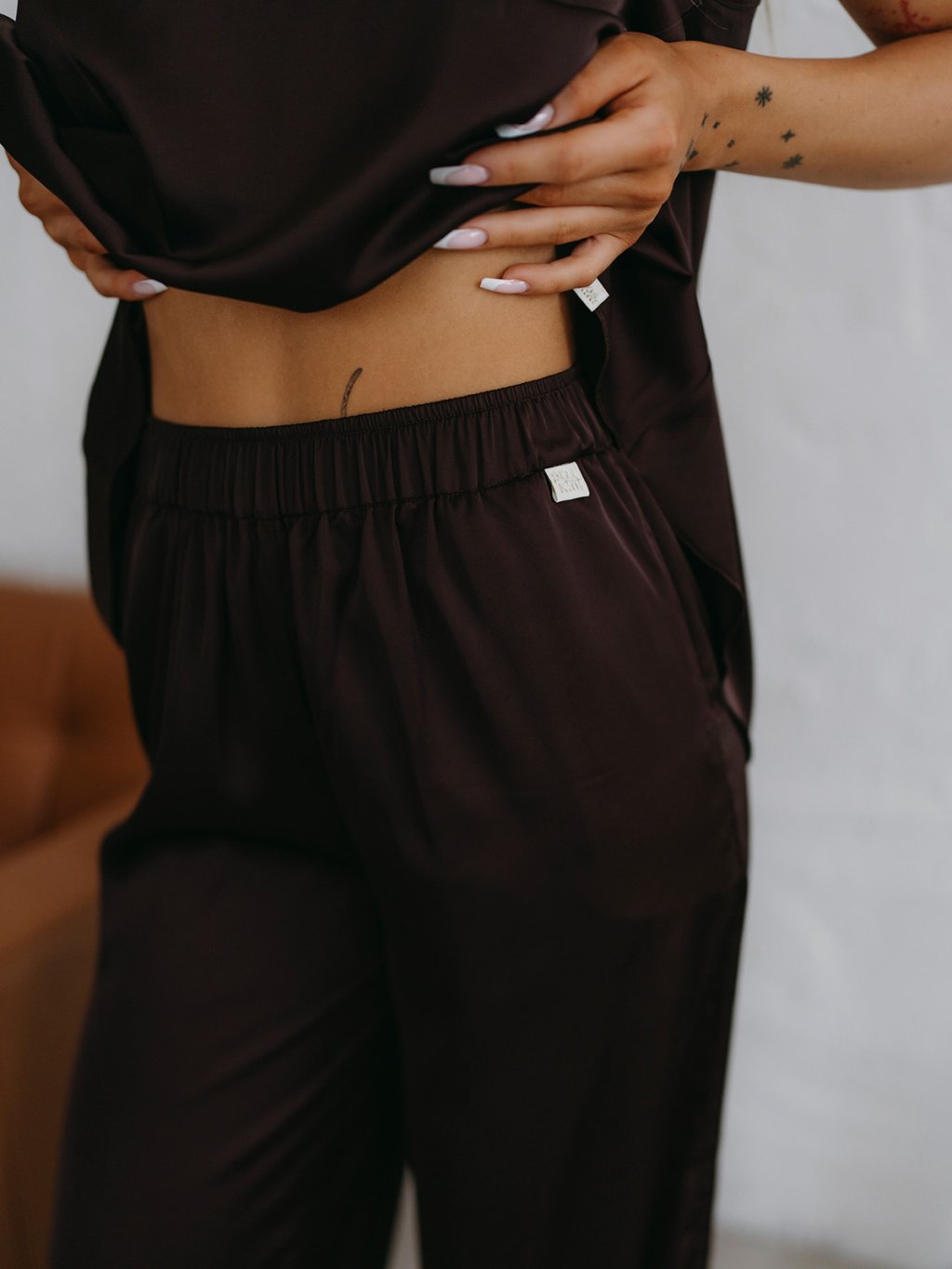 Dámske saténové nohavice FANCY - CHOCCO hnedá
