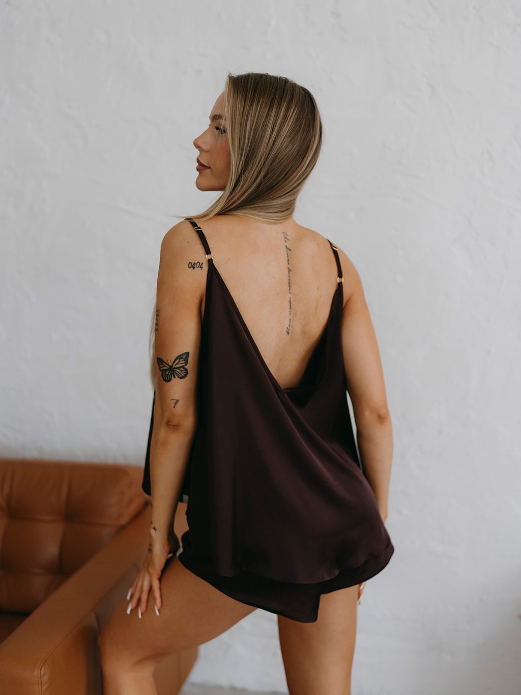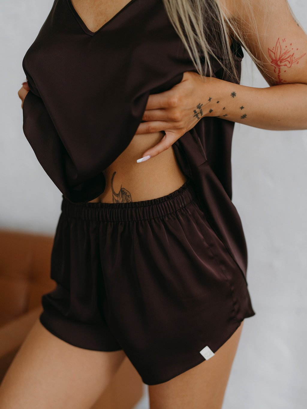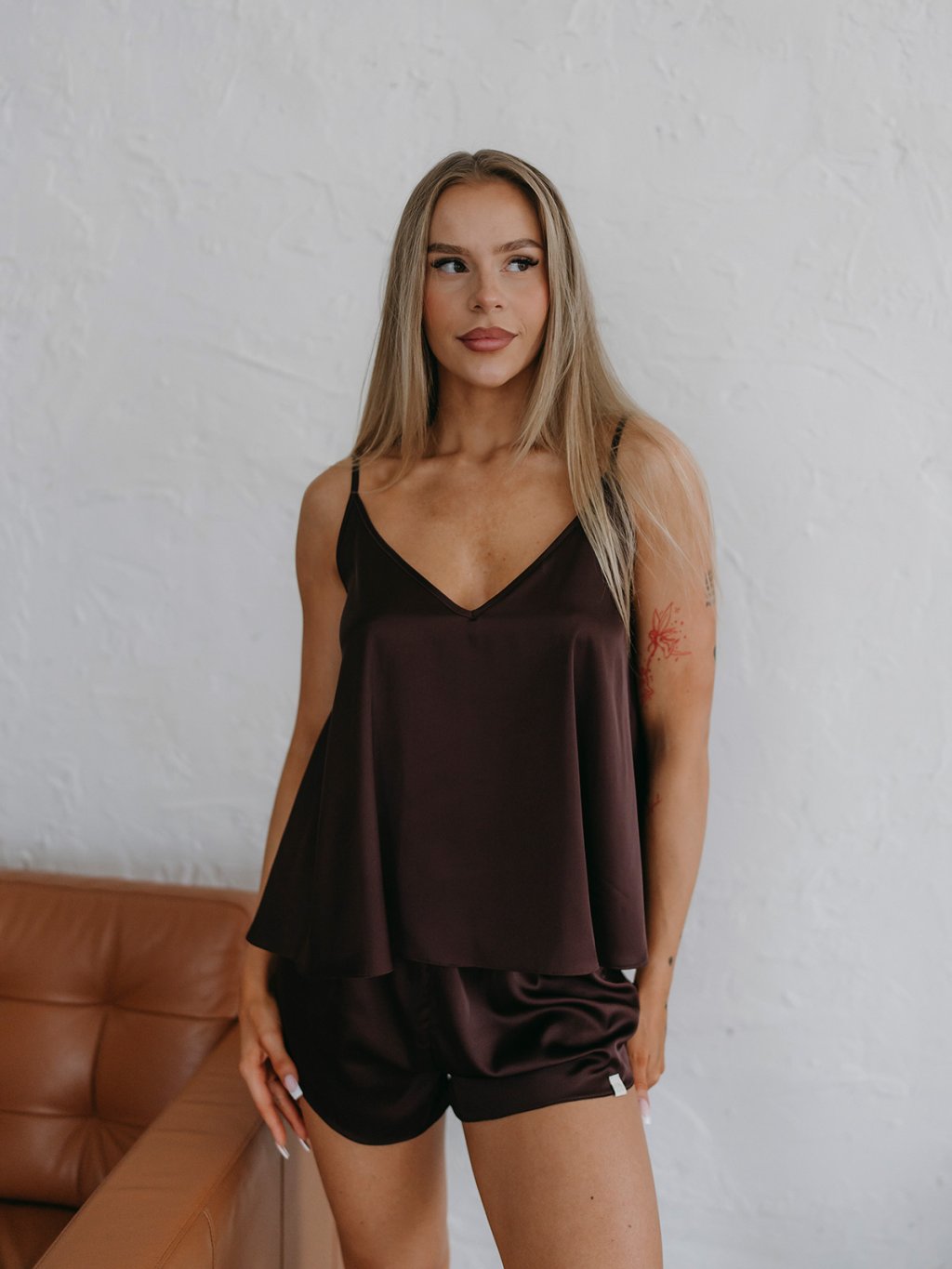 Dámske saténové pyžamo FAIRY - CHOCCO hnedá