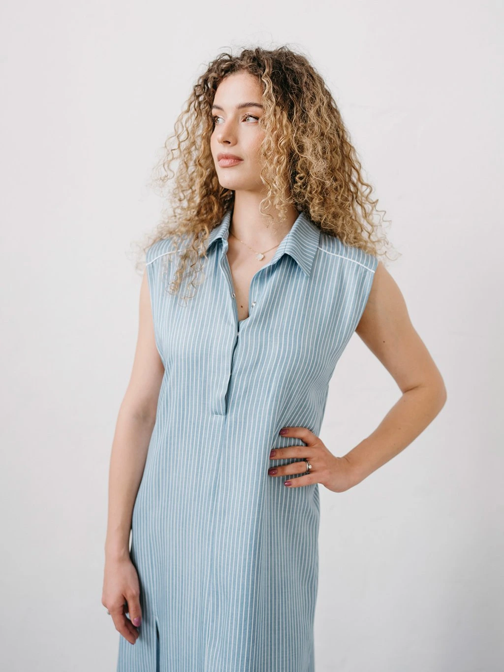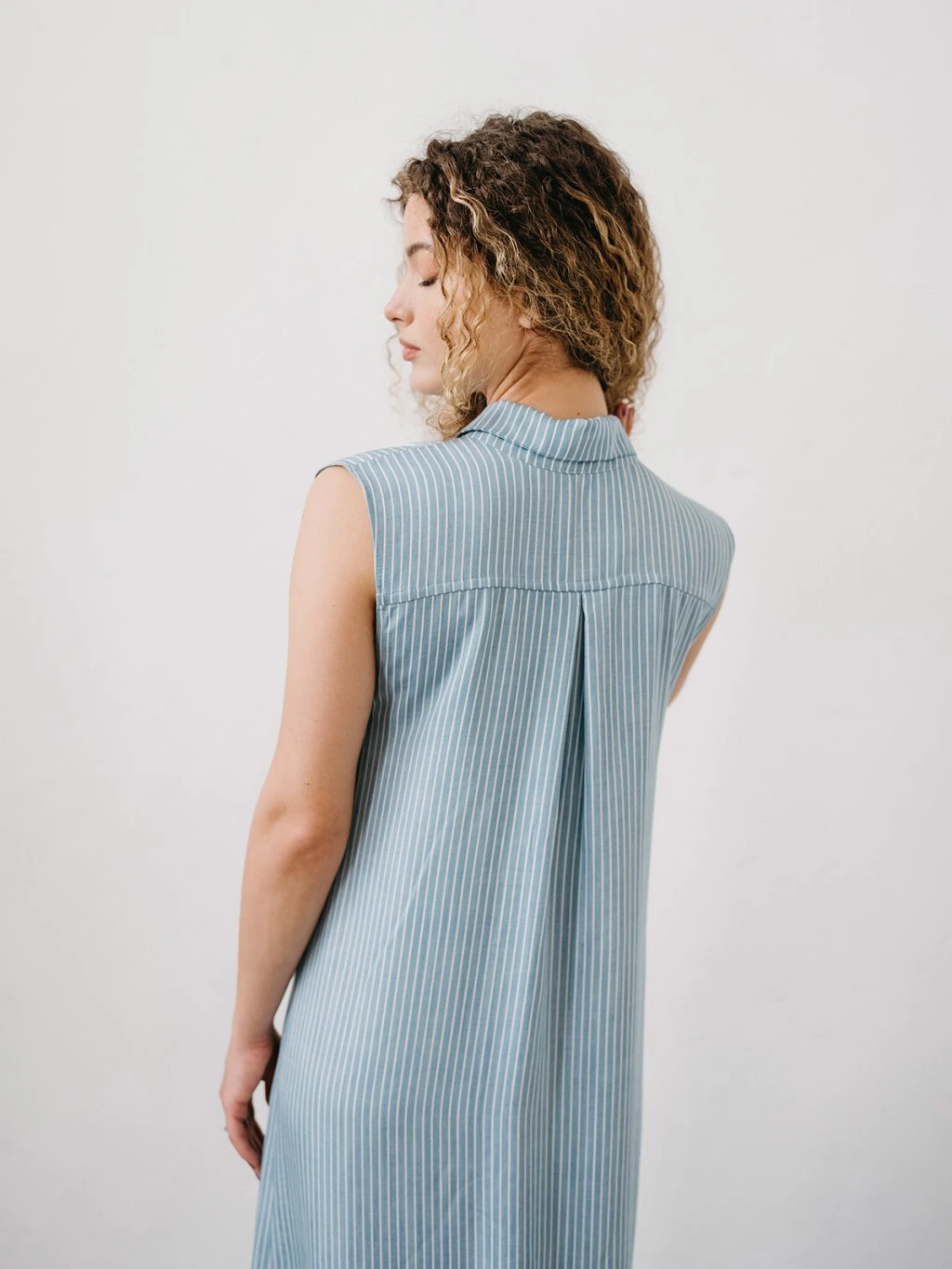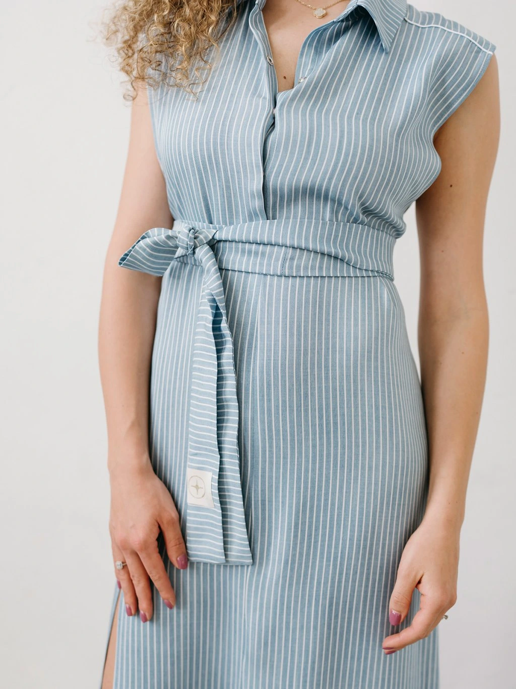 Krásny pásikavý vzor a detaily, na ktoré ste v Priskini zvyknutí. Všitá jemná paspulka aj kovové cvoky robia šaty elegantnými a štýlovými.