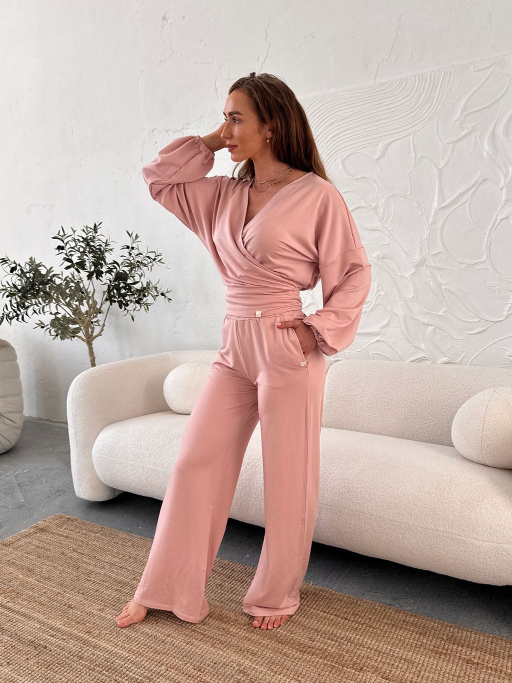 Dámske tepláky Tencel DAY - púdrová ružová